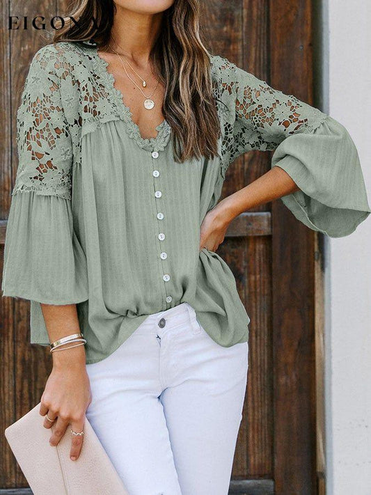 Lace Shirt Long Sleeve Solid Deep V Pullover Chiffon Shirt