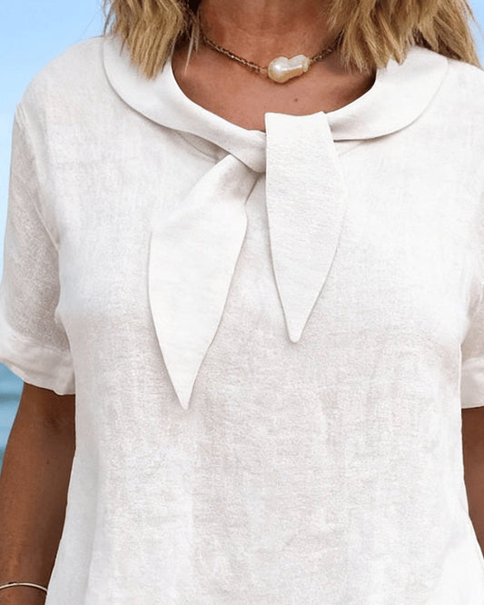 Pure Cotton Short-Sleeved V-Neck Straight Dress