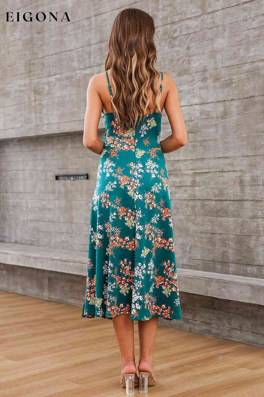 Cutout Spaghetti Strap Slit Floral Midi Dress