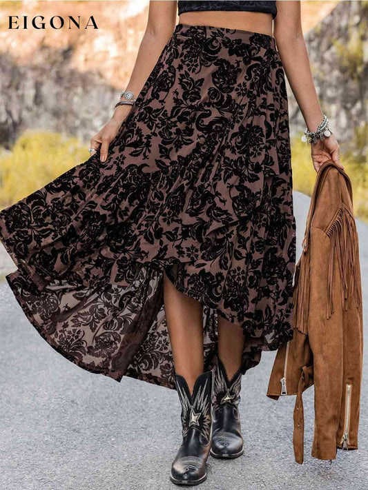 Printed Ruffled Midi Skirt