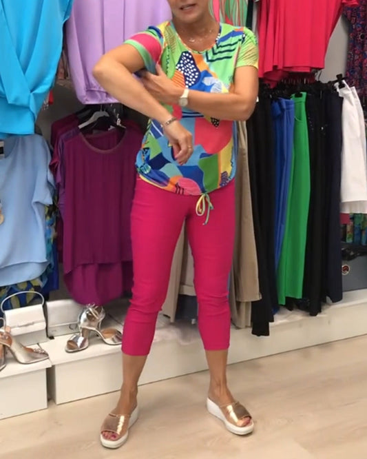 Casual printed round neck short sleeve T-shirt