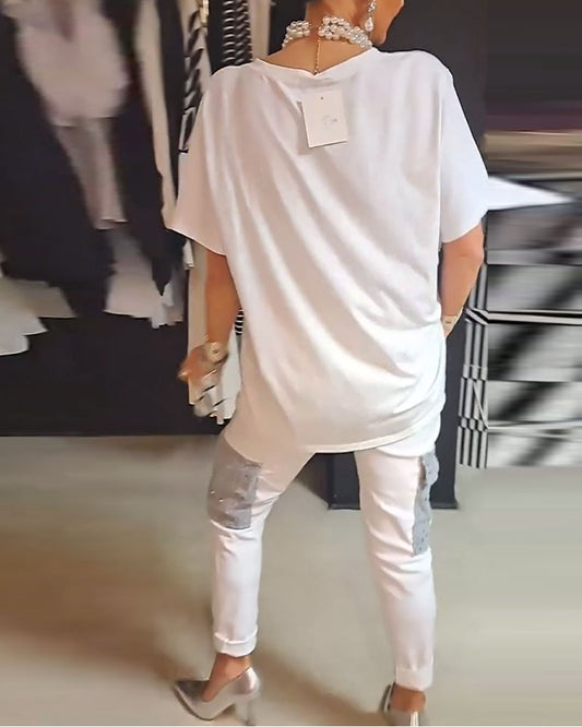 Sequin splicing short-sleeve T-shirt and pants casual sets