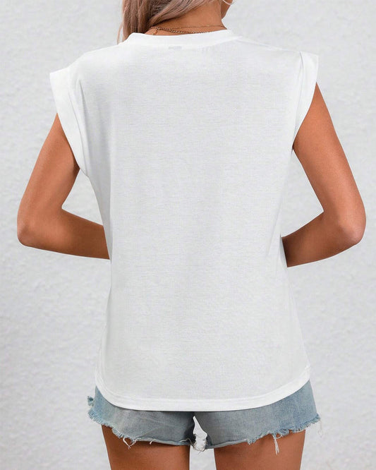 Casual solid color V-neck short-sleeve T-shirt