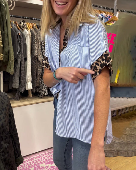 Fashion striped leopard print short sleeve shirt