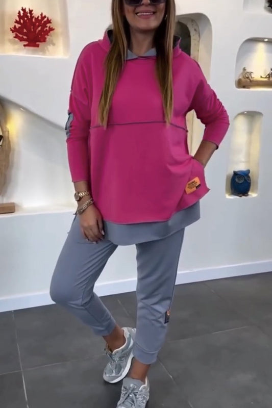 Women's contrast color pullover T-shirt and pants set