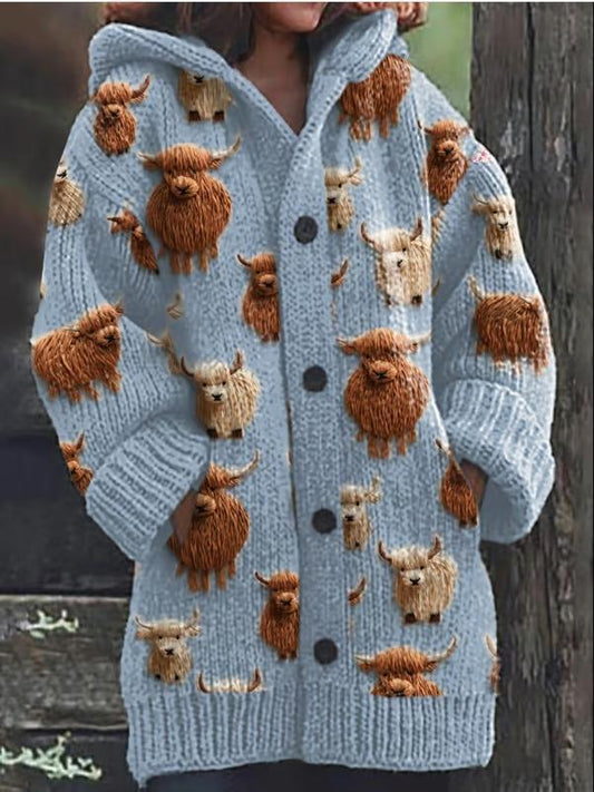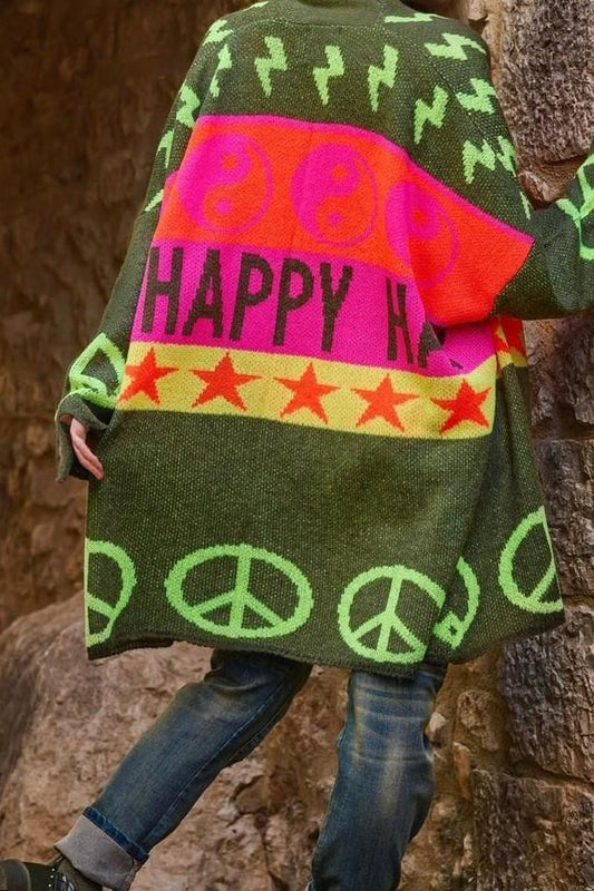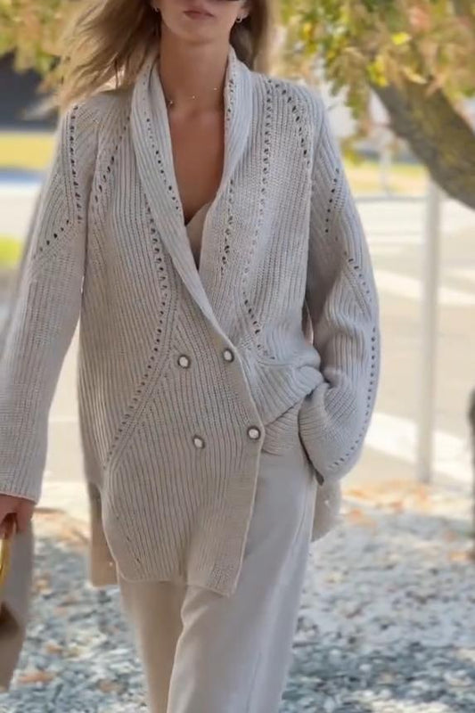 Women's Casual Contrast Color and Flat Knit Cardigan Jacket