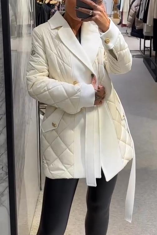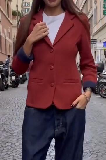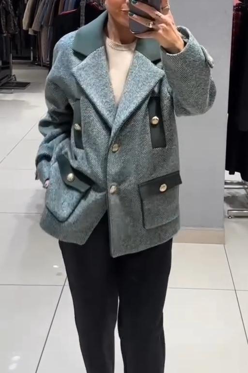 Women's Houndstooth Sleeves Knitted Patchwork Lapel Jacket