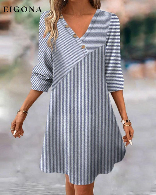 V-Neck Striped Dress with Buttons
