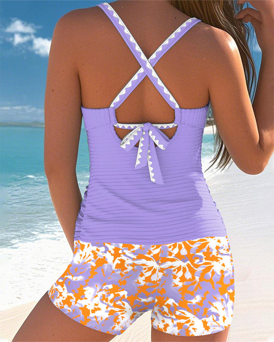 Sleeveless Printed Two-Piece Boyshort Tankini