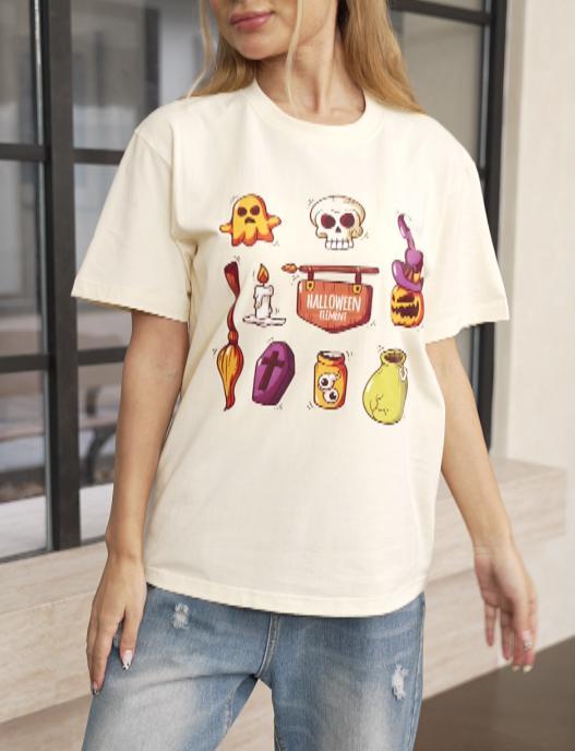 Women's Round Neck Short Sleeve Halloween Print Casual T-shirt