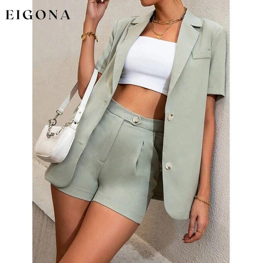 Conjunto de 2 piezas: pantalones cortos tipo blazer de color liso para mujer