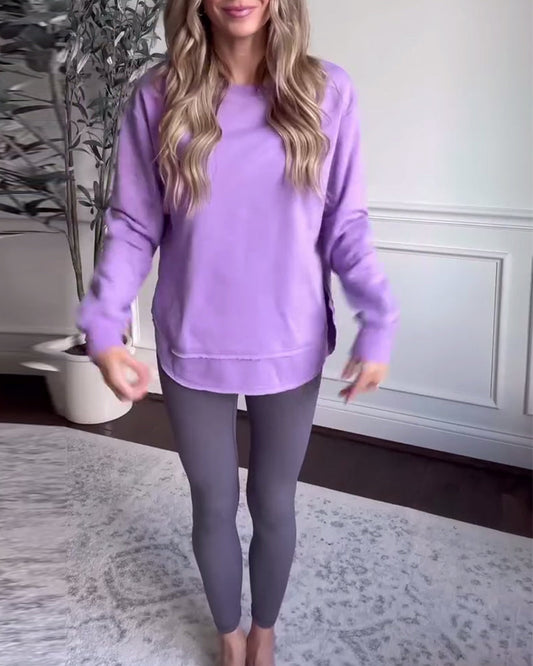 Top suelto con cuello redondo de color sólido simple
