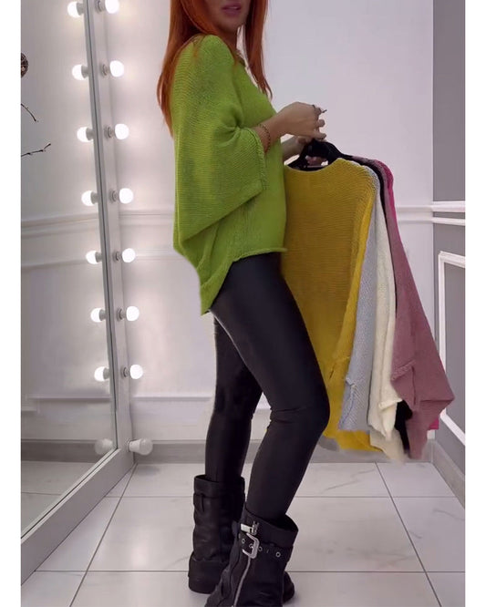 Einfarbiger, lockerer Pullover mit Fledermausärmeln