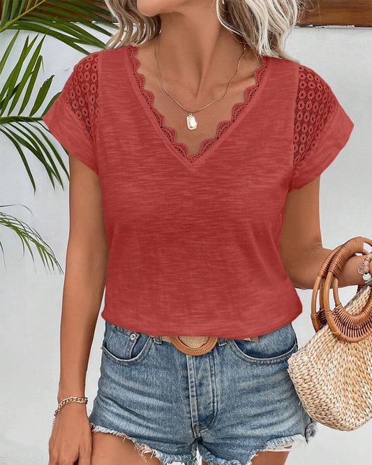 Einfaches, einfarbiges T-Shirt mit V-Ausschnitt