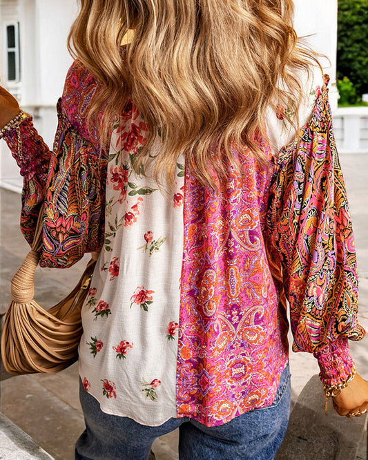 Bedrucktes Etuikleid mit V-Ausschnitt und kurzen Ärmeln