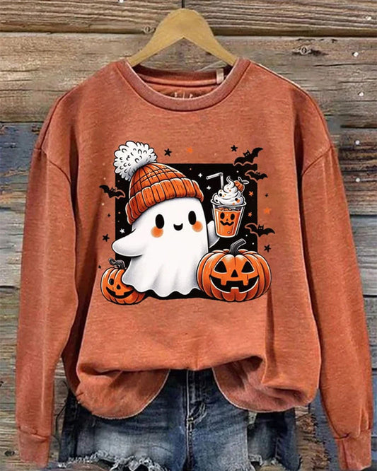 Sudadera con cuello redondo y estampado de fantasmas lindos de Halloween para mujer