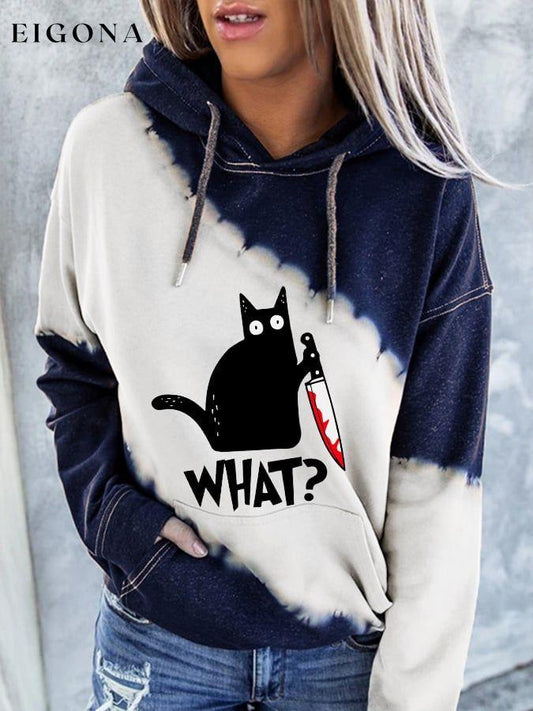 Sudadera con capucha y estampado tie-dye de gato negro divertido de Halloween para mujer