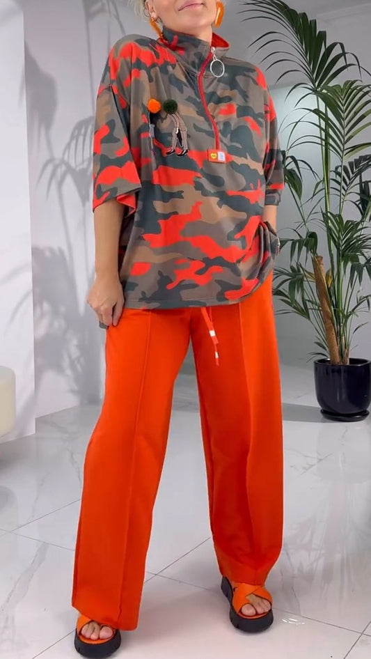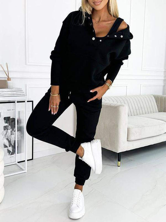 Traje deportivo informal de manga larga con capucha y medio botón para mujer