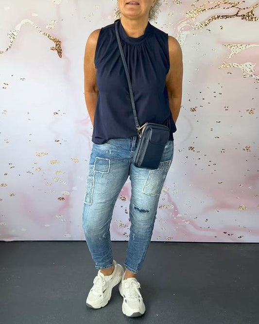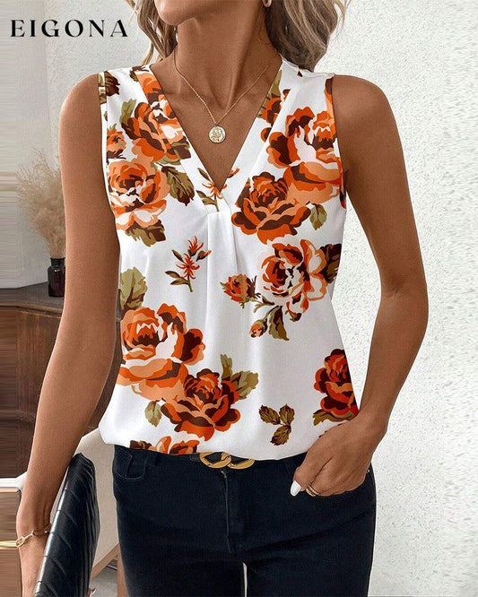 Lässiges ärmelloses Kleid mit V-Ausschnitt und Print