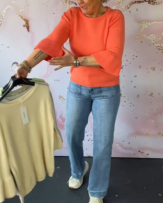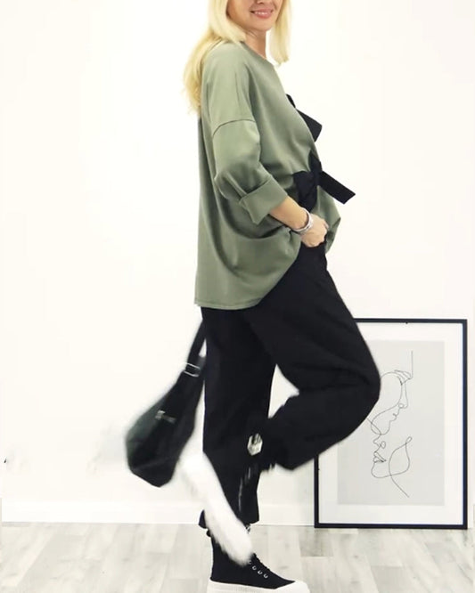 Lässiges, einfarbiges Oberteil mit Rundhalsausschnitt und Schleife