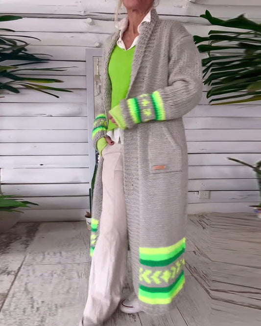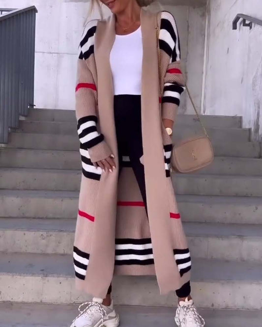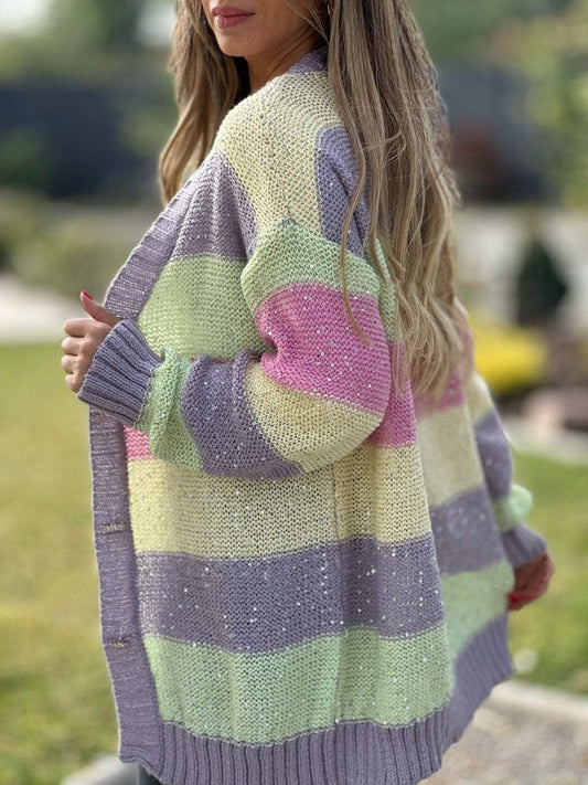 Cárdigan de punto a rayas casual de color en contraste para mujer
