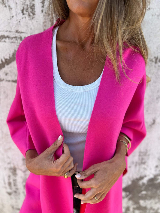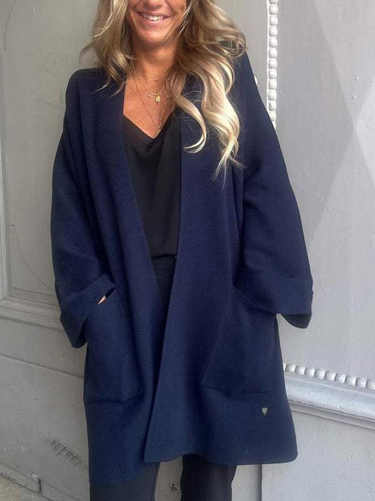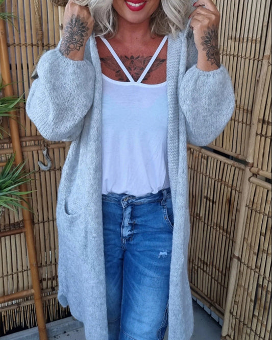 Cárdigan casual de manga larga con bolsillo de color sólido