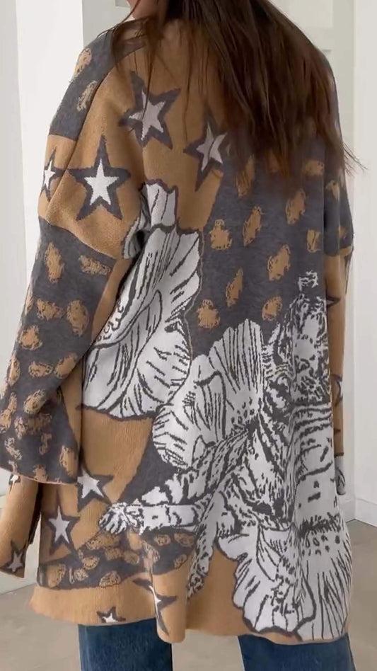 Cárdigan de punto informal de manga larga con cuello en V de otoño para mujer