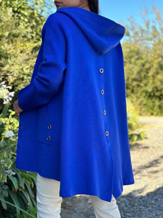 Cárdigan informal con capucha y bolsillo con botones de color liso