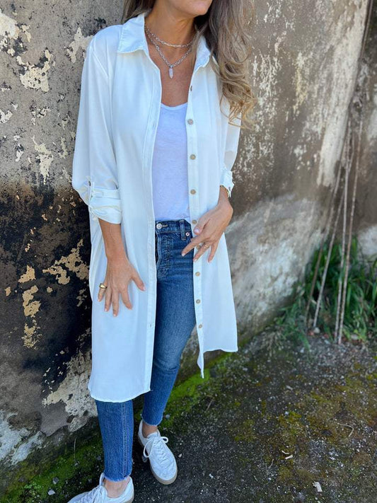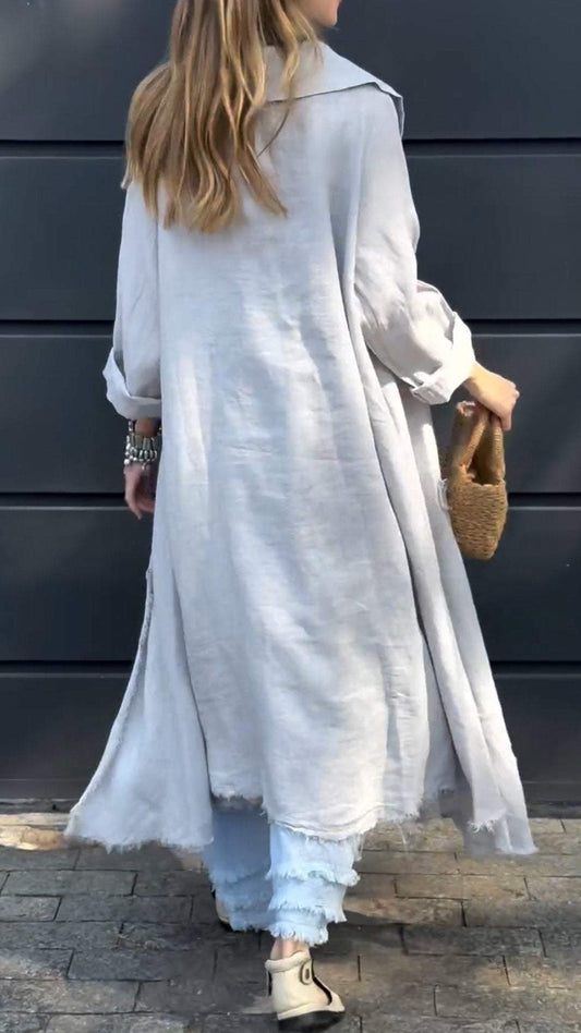 Cárdigan largo informal de algodón y lino con solapa grande para mujer