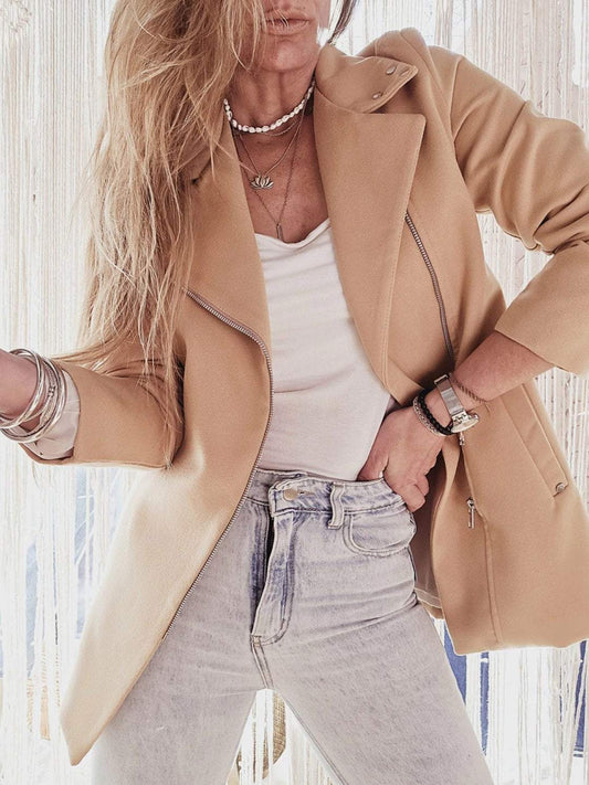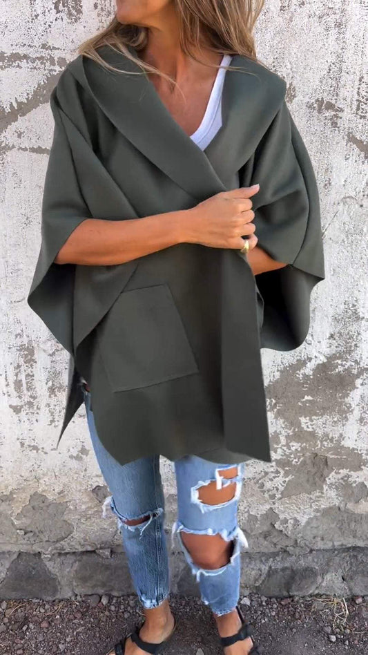 Chaqueta tipo capa de color liso con cremallera y cuello alto para mujer
