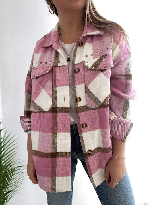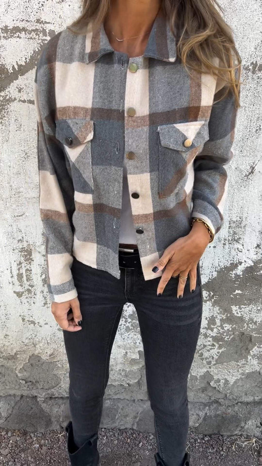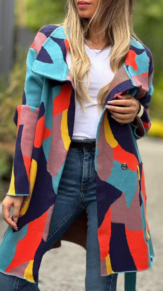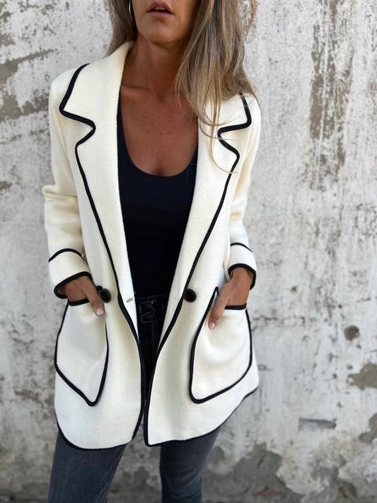 Top de chaqueta informal con patchwork de bloques de color para mujer