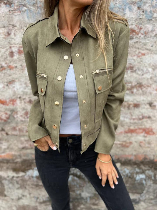 Chaqueta tipo chaleco de color liso con solapa informal para mujer