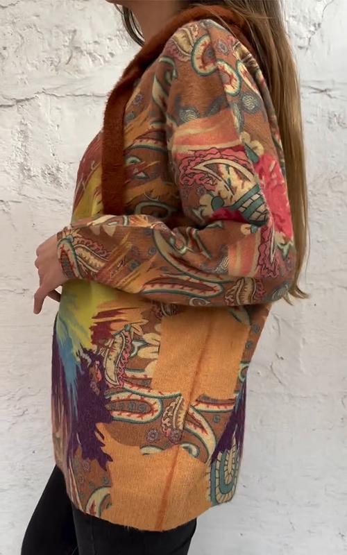 Chaqueta estilo suéter con capucha y estampado en contraste para mujer