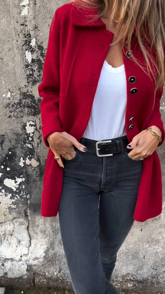 Abrigo de manga larga con botones de cuerno de lana para mujer