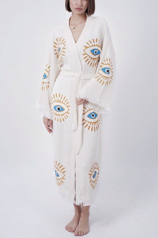 Blusa tipo kimono con estampado de mal de ojo para mujer