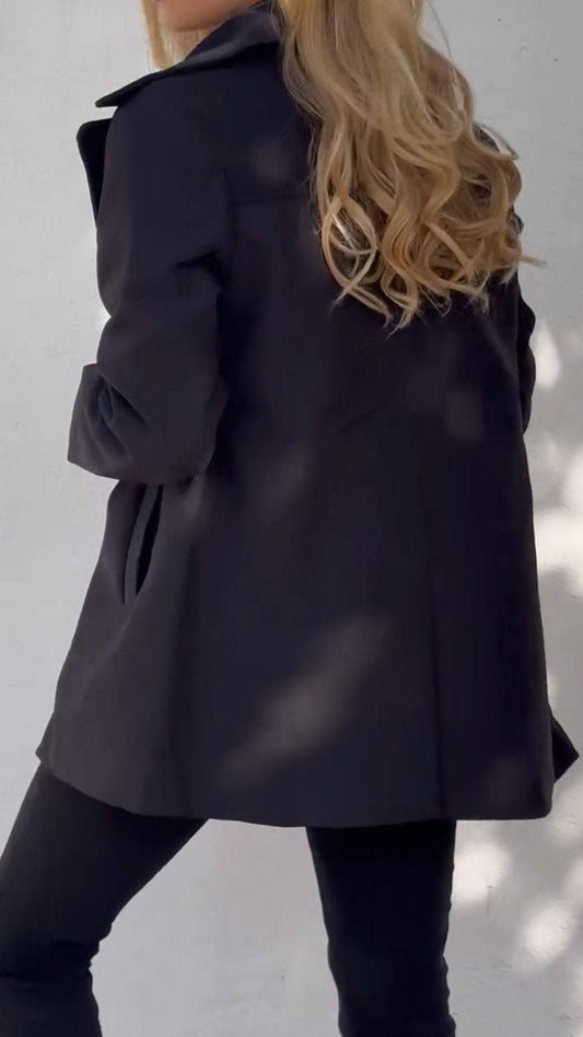 Abrigo de lana de cordero con solapa y botonadura sencilla