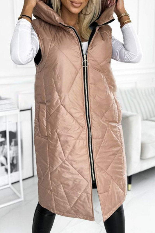 Ärmelloser, langer Mantel mit Kapuze und Reißverschluss für Damen