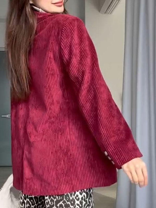 Damen Samtjacke Slim Fit Großer Pelzkragen Baumwollmantel