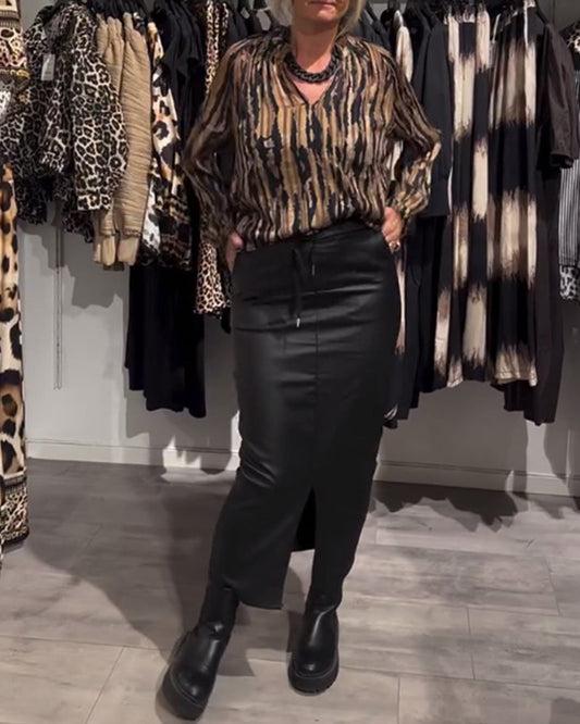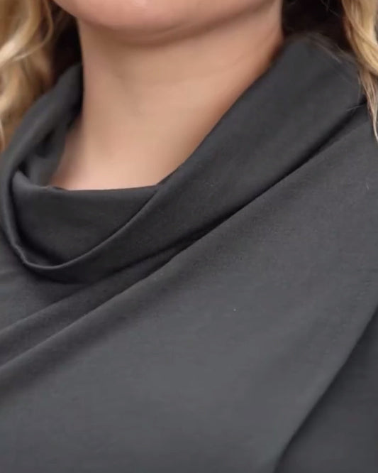 Modisches, einfarbiges Langarmoberteil mit Wasserfallkragen