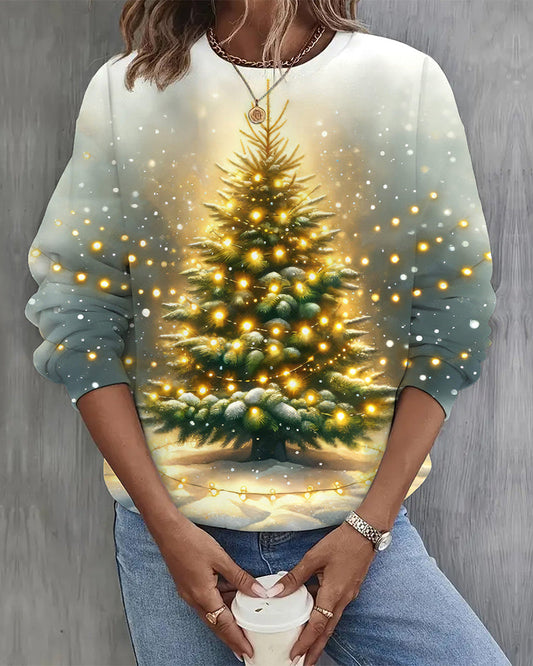 Lässiges Sweatshirt mit langen Ärmeln und buntem Weihnachtsbaum-Print