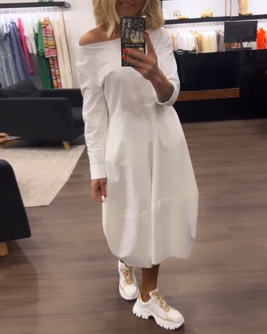 Lässiges einfarbiges Rundhalskleid mit langen Ärmeln