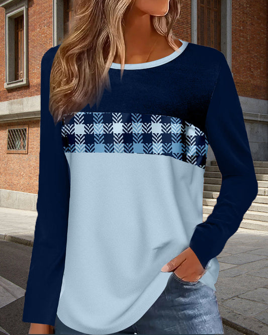 Rundhals-Langarm-Oberteil mit Farbblockdesign