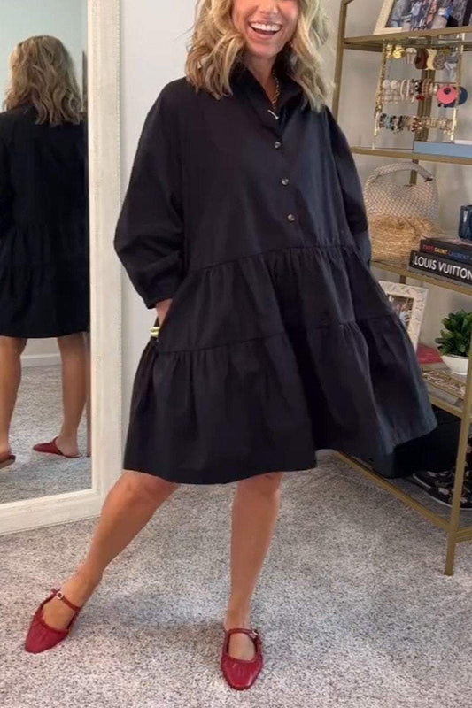 Lässiges, langärmliges, kurzes Kleid mit Revers für Damen