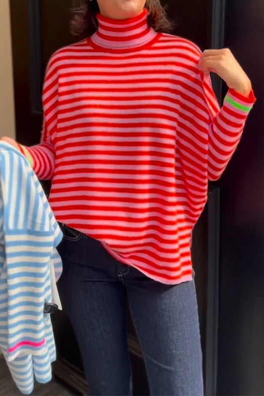 Lässiger, geschlitzter Pullover mit hohem Kragen und langen Ärmeln für Damen