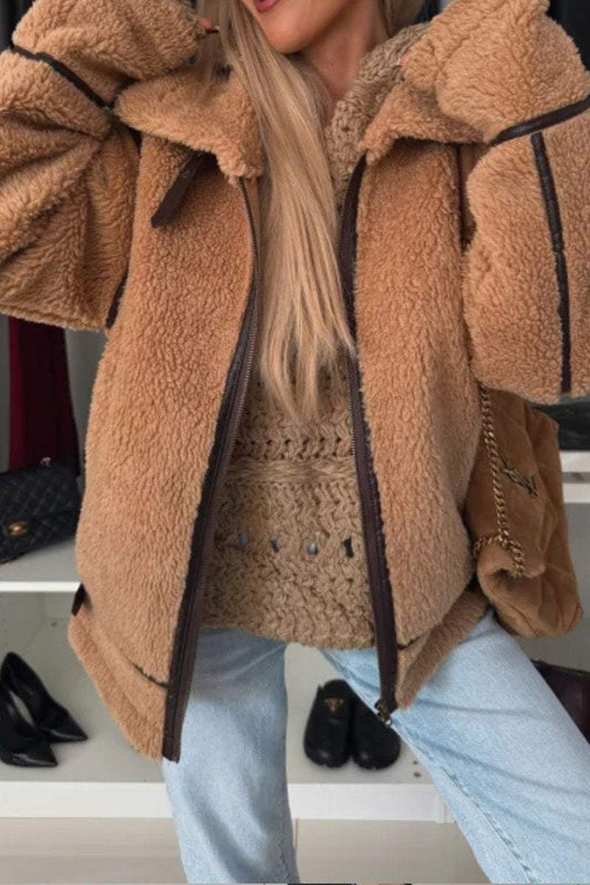 Pelzmantel mit langen Ärmeln und Revers für Damen