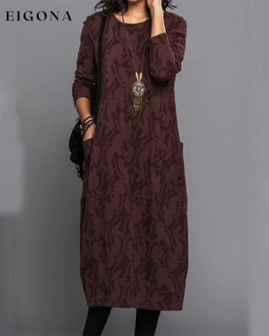 Vestido Estampado de Manga Larga con Bolsillos
