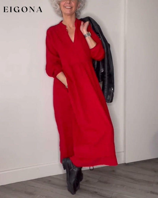 Vestido de manga larga con cuello en V y abertura