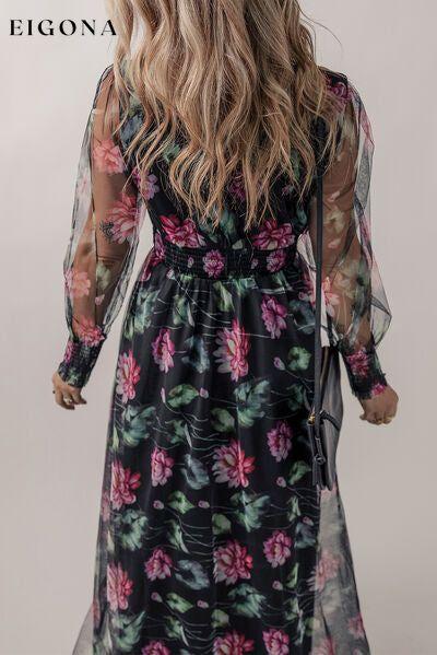 Vestido largo de manga larga con cuello en V y estampado floral