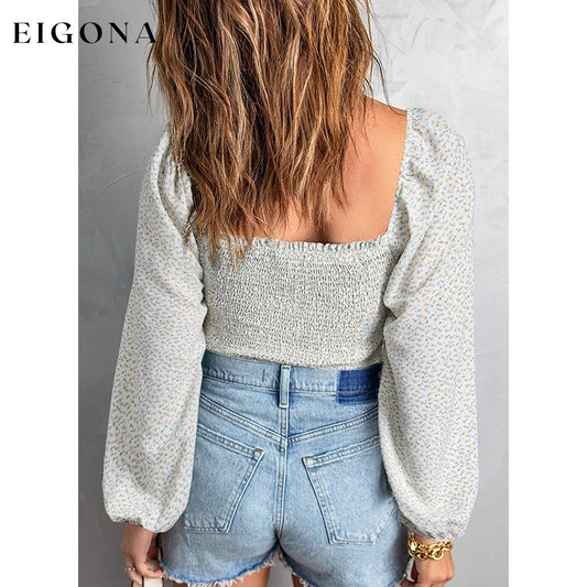 Tops con cuello cuadrado y manga larga abullonada para mujer