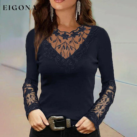 Top de encaje de manga larga para mujer